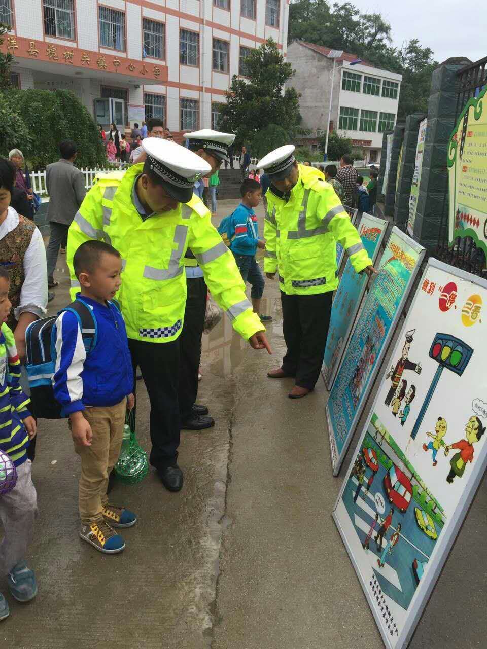 活动开始后,学生和家长在民警的带领下,依次观看了由洋县大队精心制作的交通事故案例及漫画展板。每到一处展板面前,民警就用通俗易懂的语言给学生及家长讲述学习交通安全知识的重要性,并从学生上学、放学、走亲访友、外出游玩等日常出行活动着手,生动的介绍了交通信号灯、交通标线、交通标志的功能和作用,要求学生和家长自觉遵守交通安全法律法规,坚决抵制随意横穿马路、驾驶车辆逆行、乘坐三轮摩托车、电动车、低速载货汽车等非客运车辆出行等交通违法行为,并提醒学生牢记“交通安全无小事”,把今天学到的交通安全知识讲述给没有到现场父母们听,让他们给自己树立良好的学习榜样。活动结束后,民警开始在学校门口进行现场纠处教育,告诫部分家长们守好规矩、树好榜样,不要成为孩子们学习的反面教材。