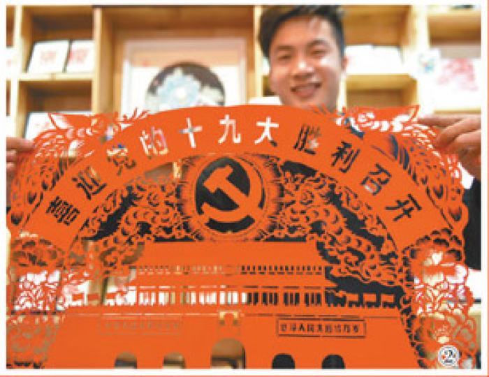 90后剪纸艺人创作出“喜迎党的十九大胜利召开”主题剪纸作品